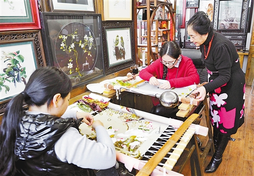几年前,康宁受邀在重庆市非物质文化遗产保护中心开设了自己的工作室——“渝康宁蜀绣庄”。她告诉记者,来到这里,不只为创作、销售和推广,更重要的是,找到愿意传承、并有能力传承蜀绣这项古老技艺的年轻人。