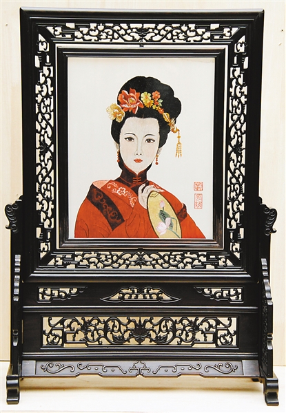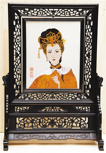 ▲康宁的蜀绣作品《国色天香》正面。